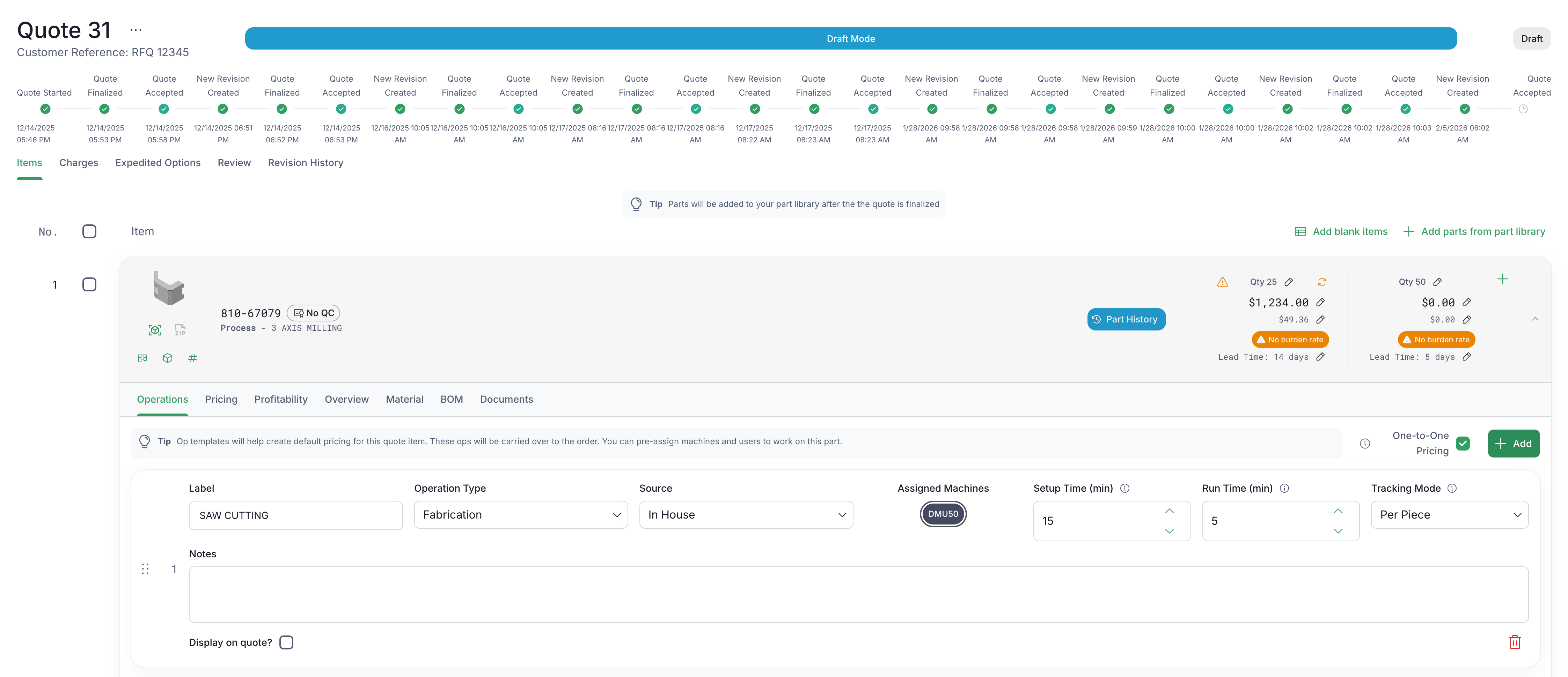 Define item details, track cost breakdowns, and manage lead time adjustments.